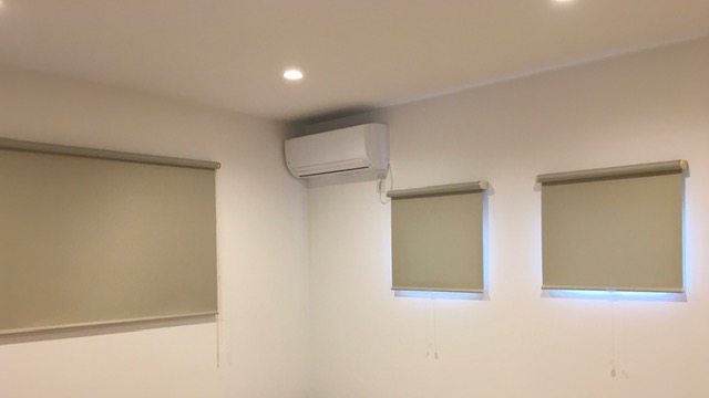 腰窓と2つ並んだ小窓にロールスクリーンを付けました。