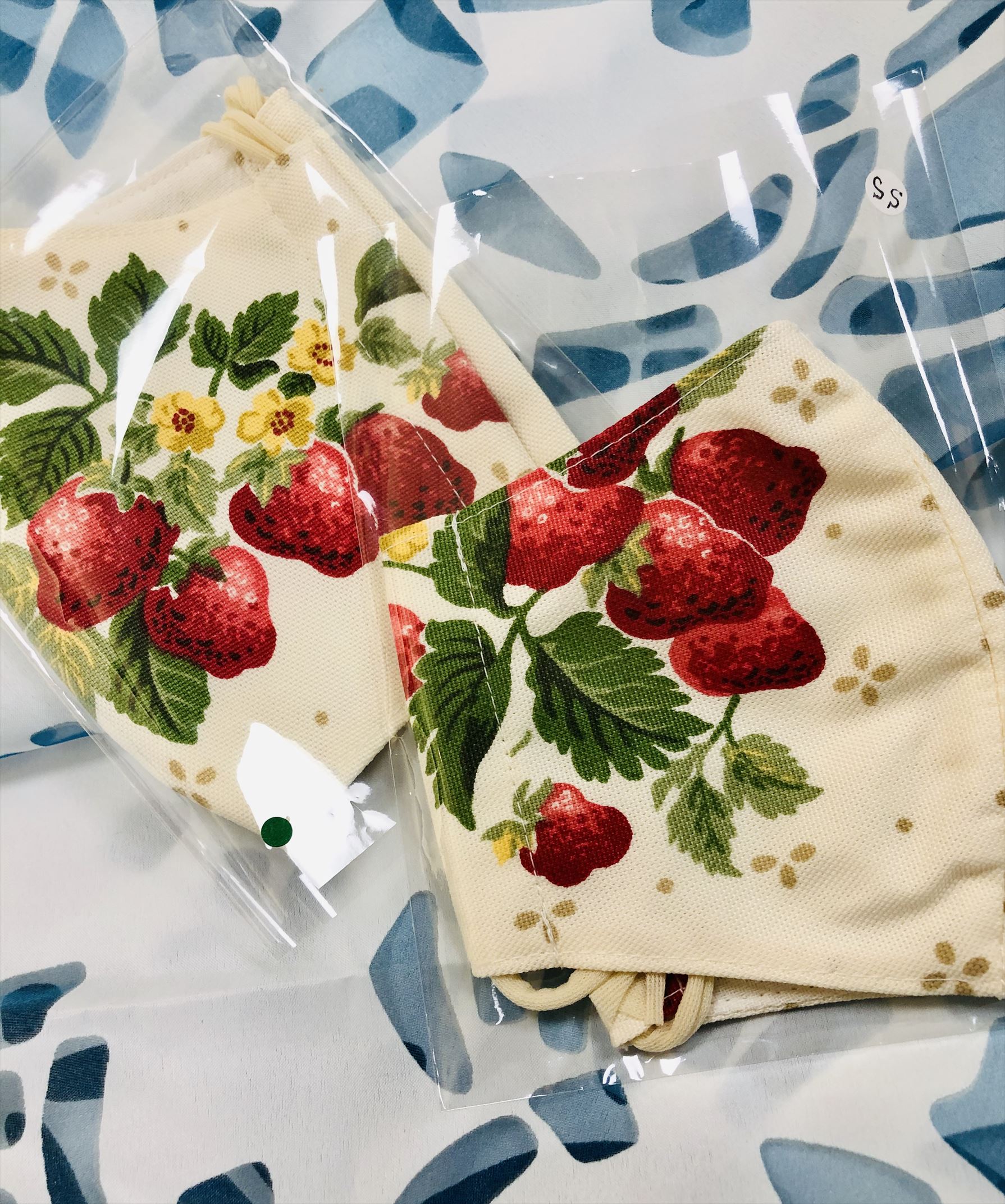 輸入ファブリックを使った可愛いイチゴ柄のマスクのセットです🍓