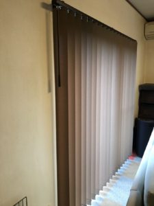 2窓あった掃出窓はプリーツスクリーンがついておりましたが、今回はそこをバーチカルブラインドに変更致しました!