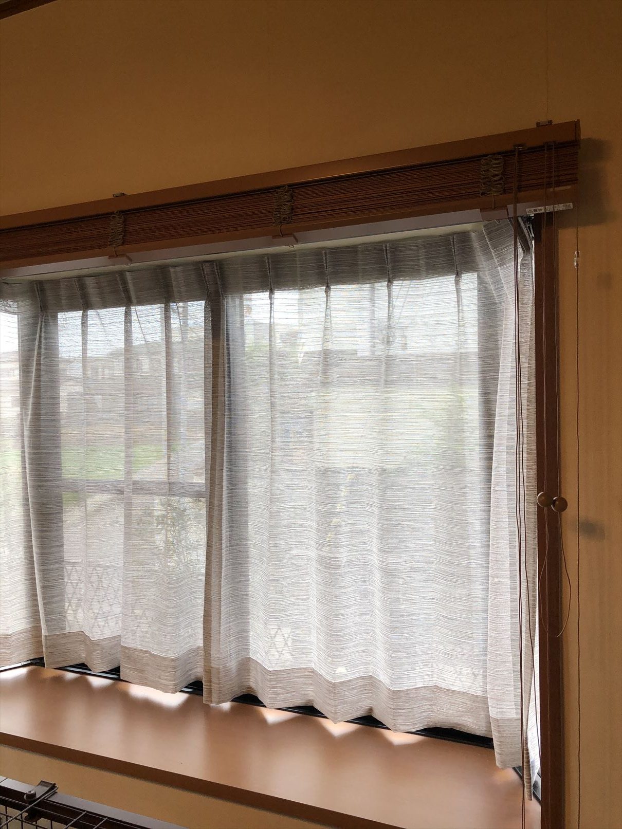 他にも別室のツインシェードのレース生地を取替えさせて頂きました!こちらは今使われているレース生地に似たようなもの、と言う事でしたので、先に使われていたものがボイル生地だったので、当店で持っているフランス製のボイル生地をお勧めさせて頂きました😊