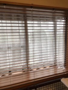 また、出窓の手前には元々ロールスクリーンが付いておりましたが、今回はガラッと変えてバンブーブラインドを取付けさせて頂きました