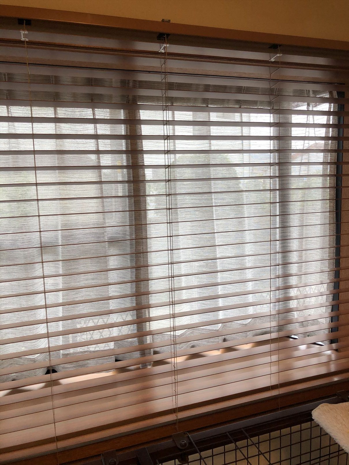 こちらはバーチカルブラインドの生地よりも少し明るめのブラウンをお選び頂きました✨ロールスクリーンとは違うお洒落さがありますね