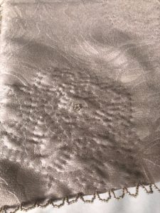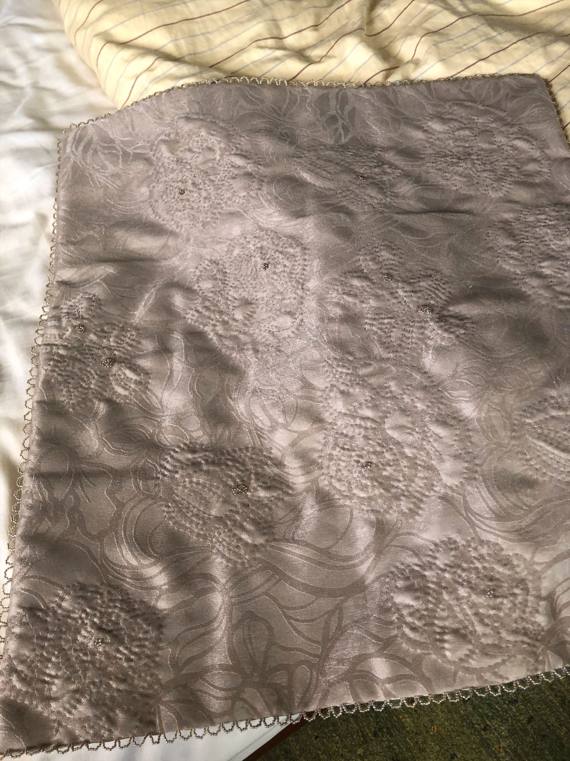 マットには細かなステッチが施され、ステッチの中とマットの周囲にビーズのアクセントが✨