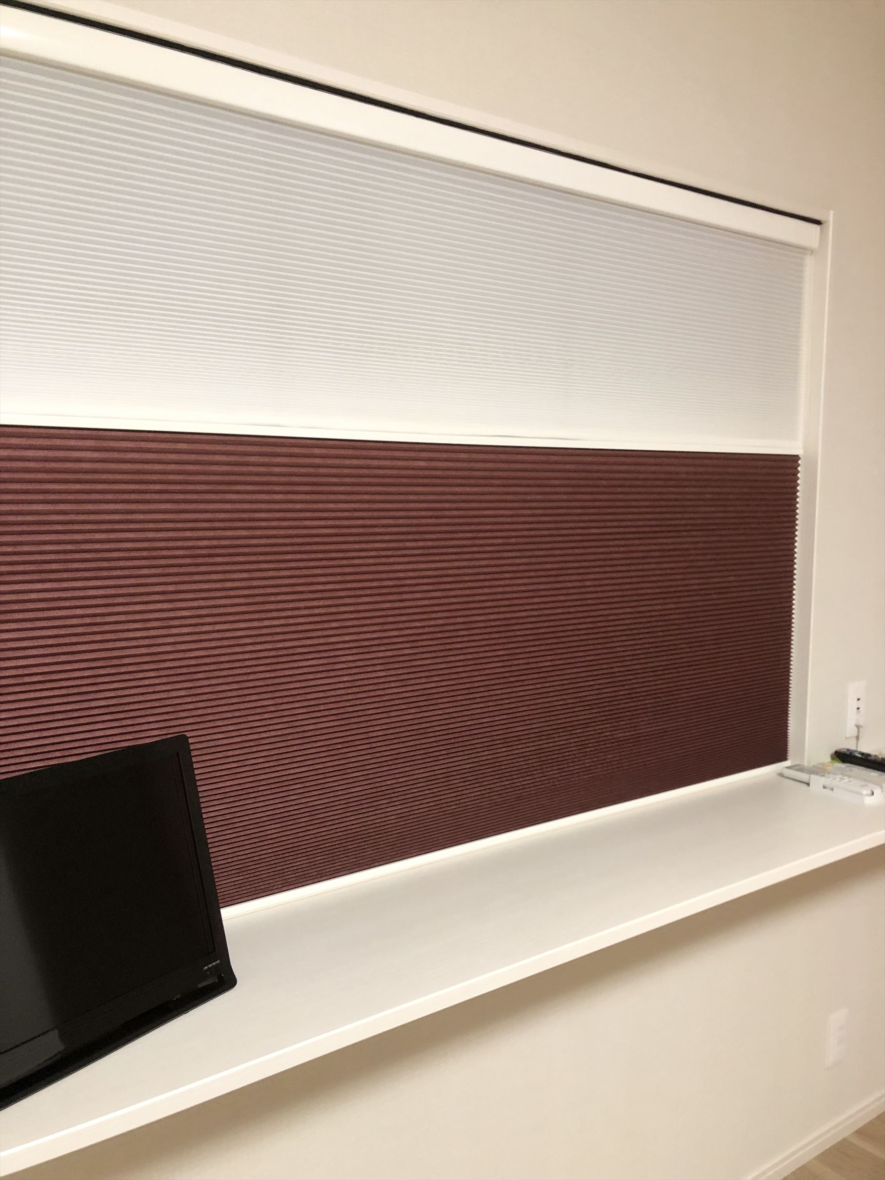 寒がりなお施主様の「出来るだけ冷気を防ぎたい」というご希望からハニカムスクリーンをお勧めしました。スクリーンの周囲からのすきま風を防ぐ『サーモブロック』仕様です。