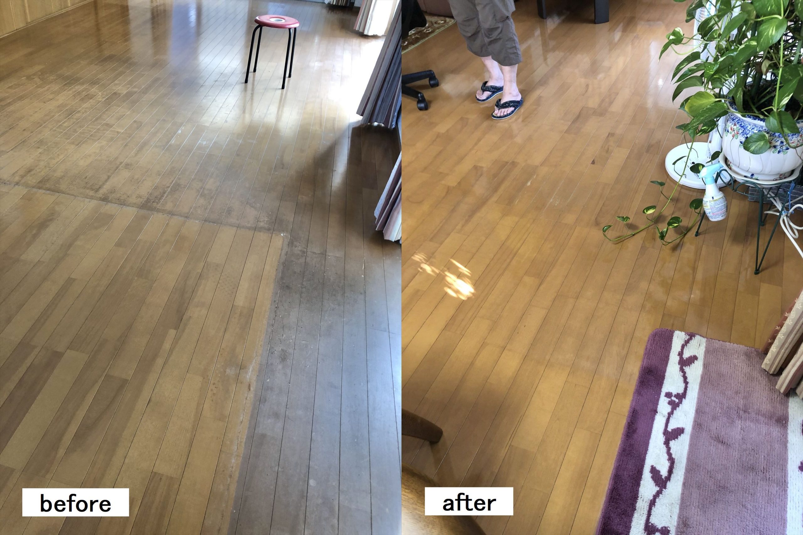 見違えるように綺麗になり感激です!床についた汚れがなかなか落ちないようになりずっと気になっていましたが、それも綺麗に取れて嬉しいです!