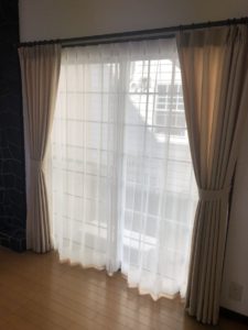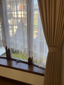 ドレープカーテンも優しいお色で、レースの透け感も丁度良く、思った通りの商品が出来て嬉しいとお客様からお言葉を頂きました。