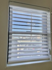玄関の窓のロールスクリーンにFUGAの調光ロールスクリーンをお選び頂きました。窓枠が白なので内側に取り付けることで一体感もありオシャレだと思います😄