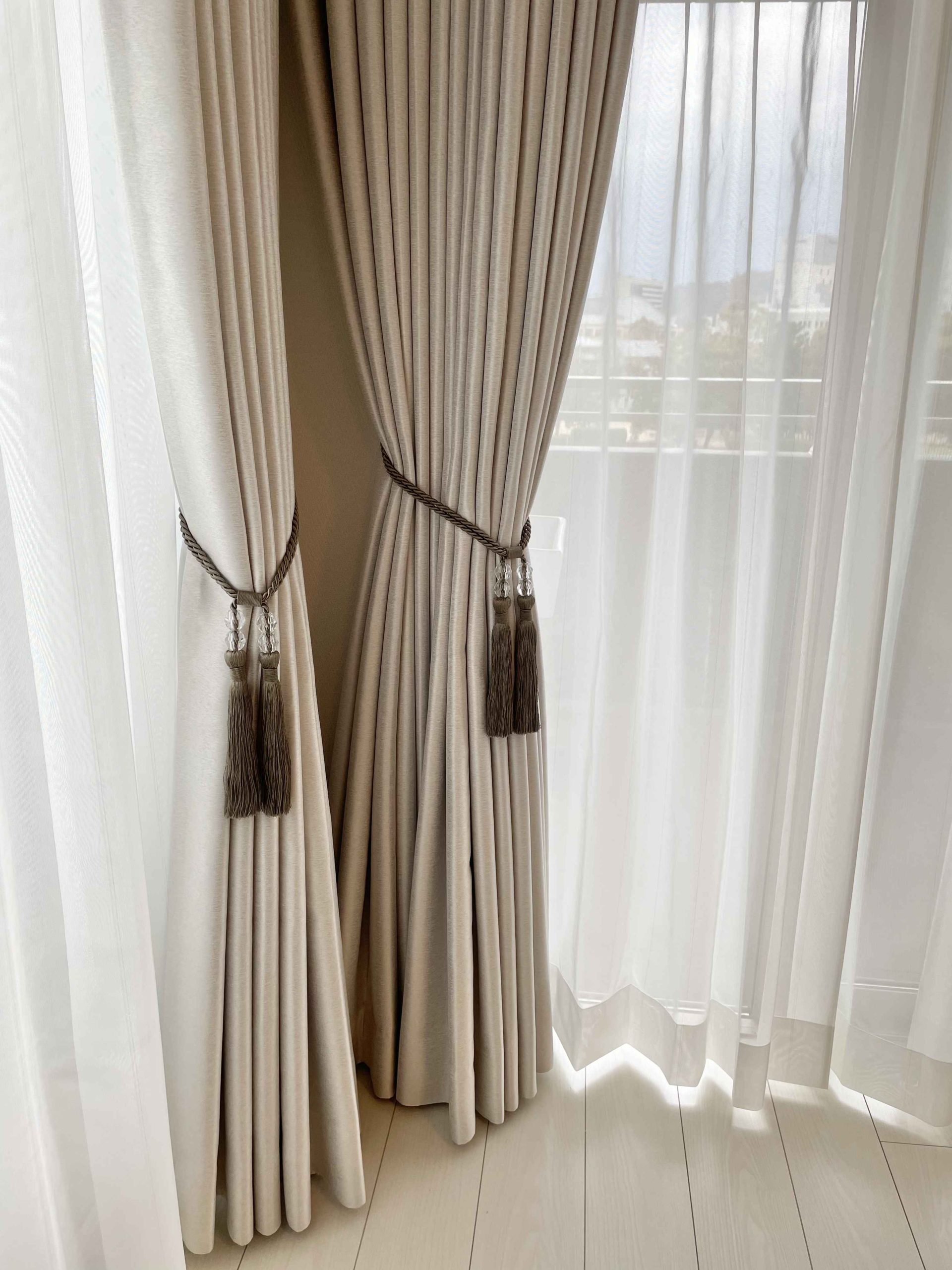 遮光ドレープカーテン、ミラーレースカーテン、装飾タッセル