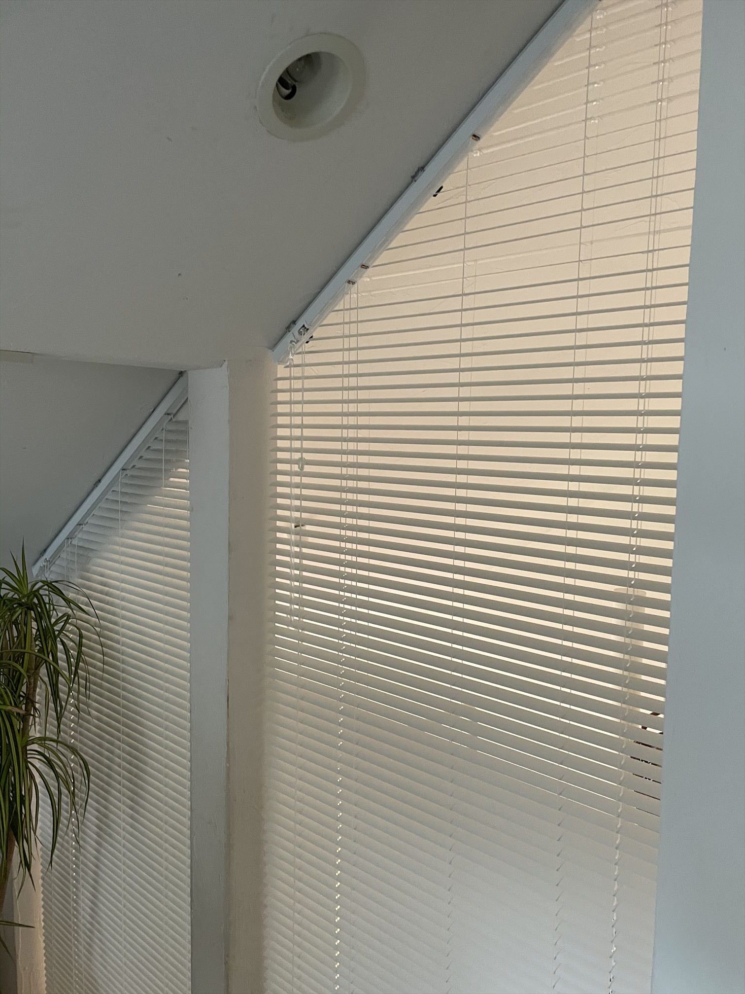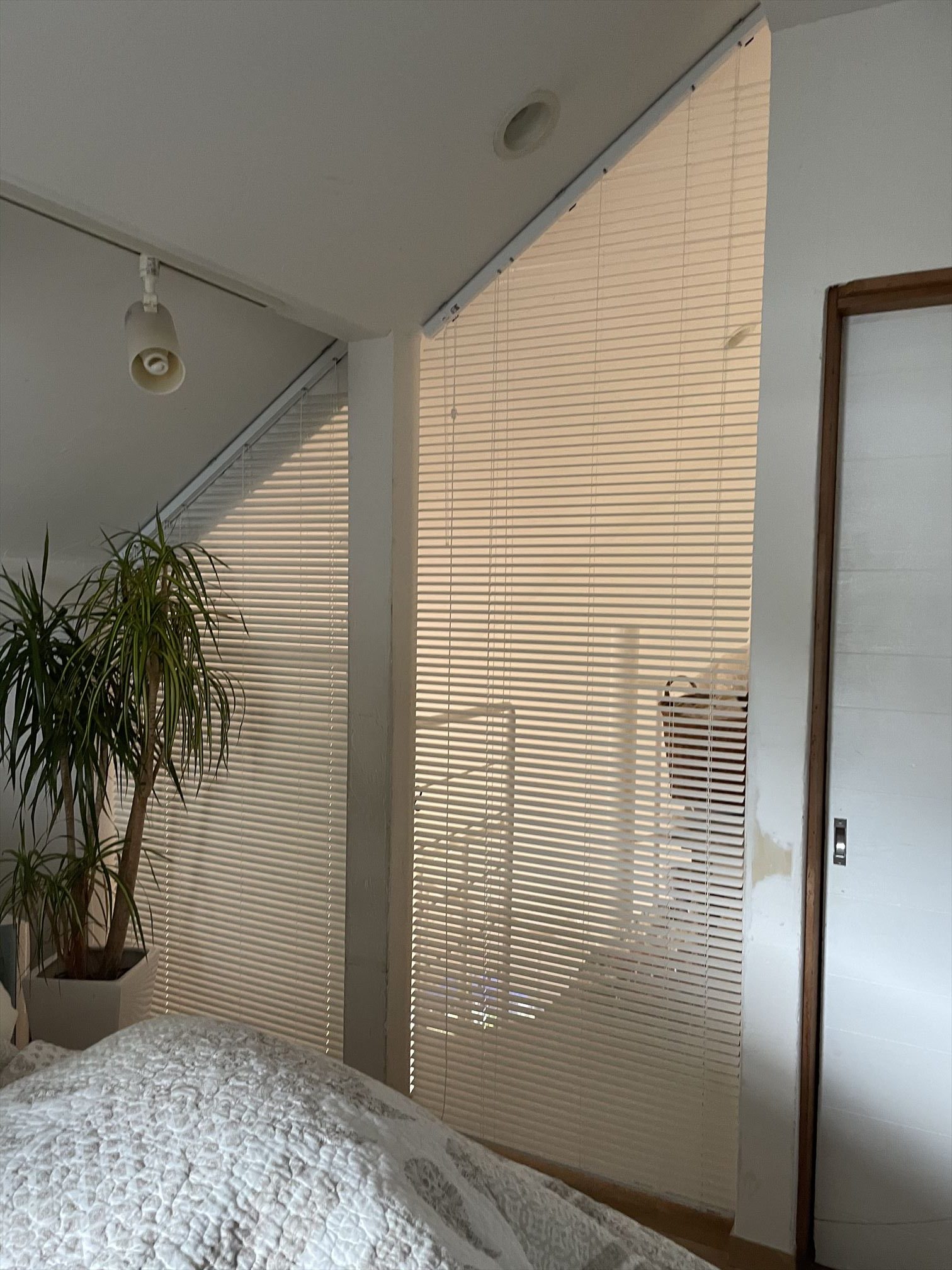 傾斜台形のアルミブラインドは製作できる比率に制限があったため、メーカーにもサイズを確認してお作りさせて頂きました。
