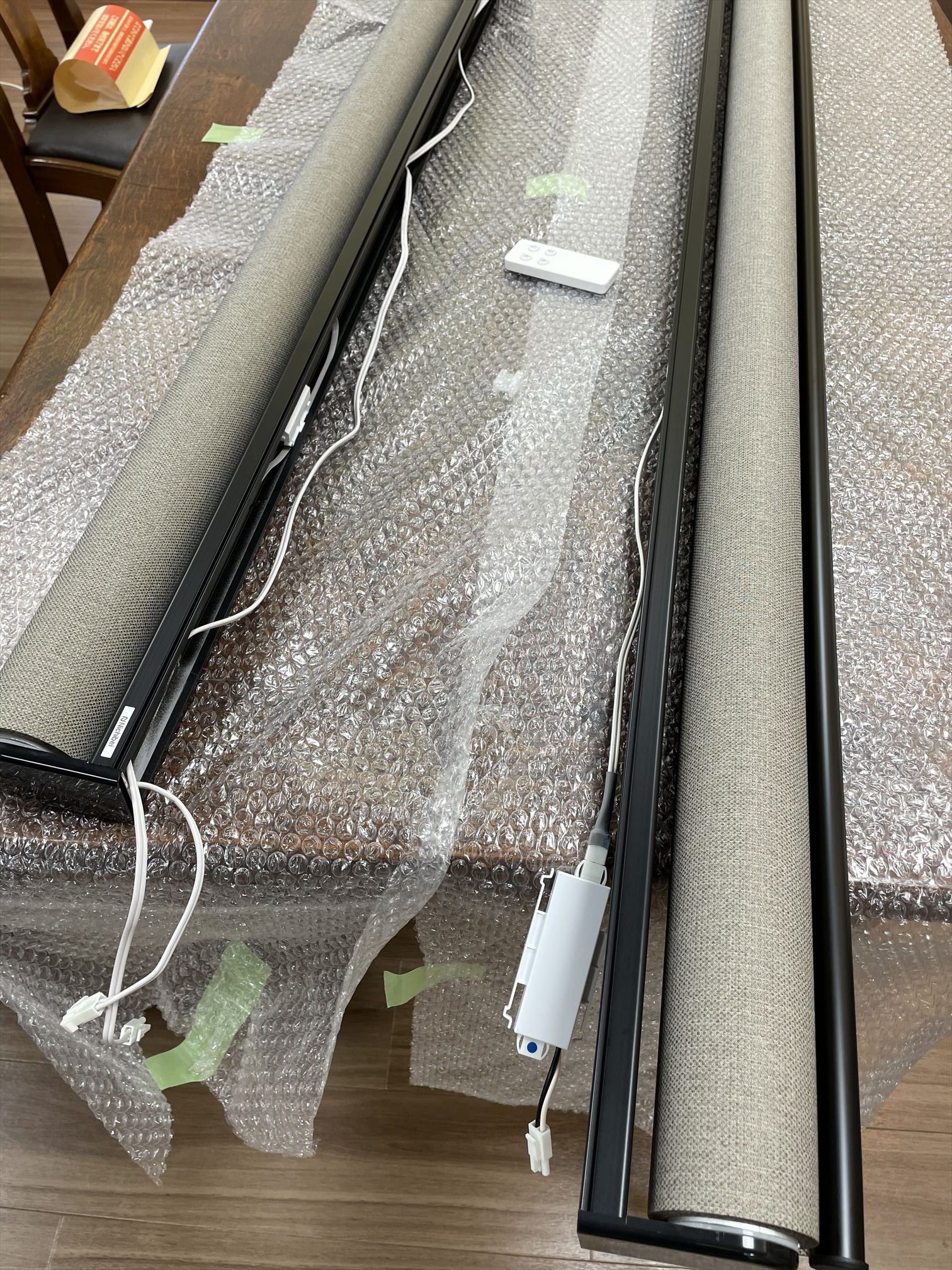 吹き抜けで取付場所までの距離が5m以上あり、より遠くへ電波が飛ぶ【RF仕様】をお勧めし、ご採用いただきました(赤外線電波ではないので、アレクサなどスマートスピーカーが対応していないことがあります)ニチベイのサイレント電動式は音もとても静かで、全く気になりません。