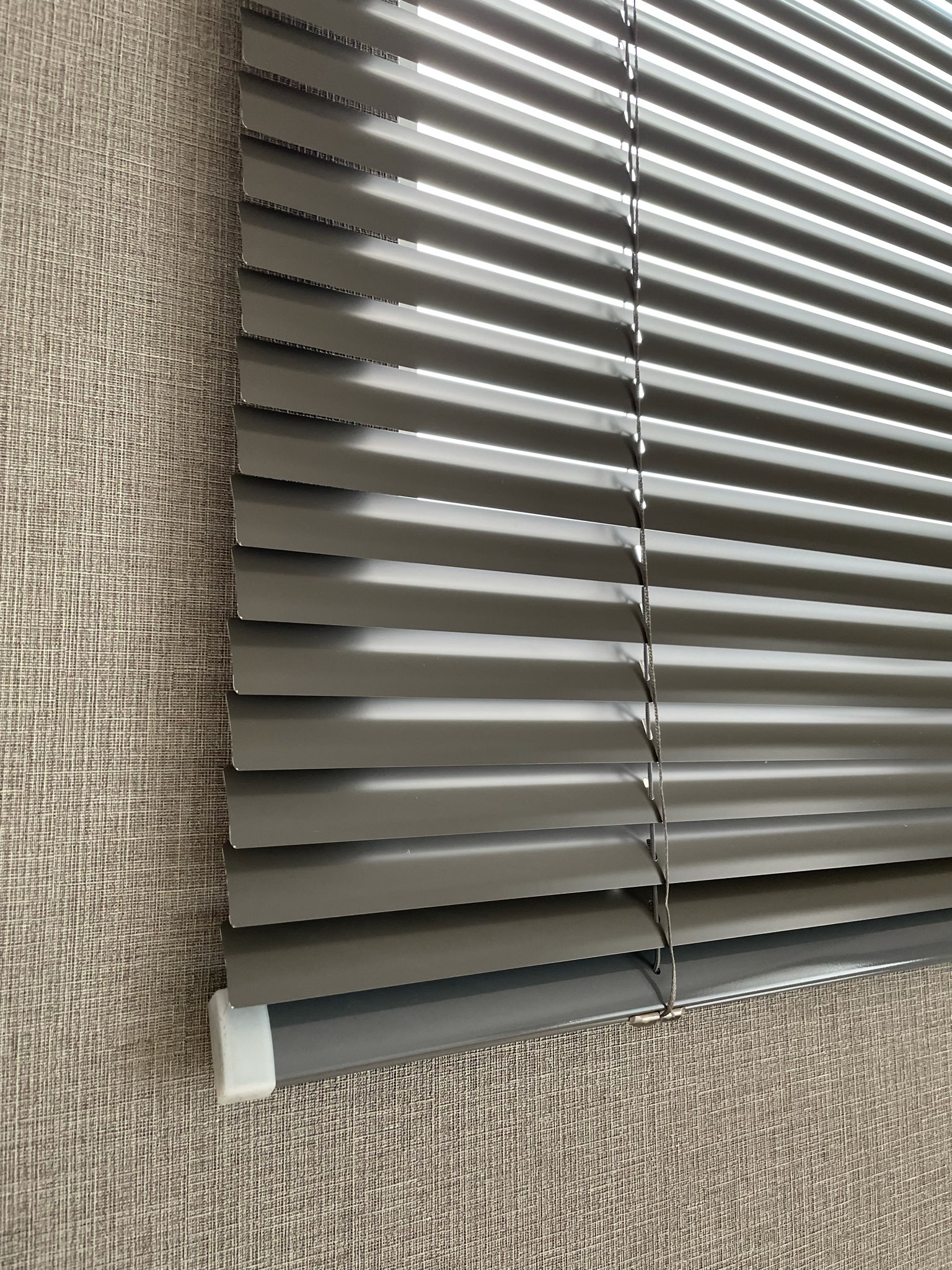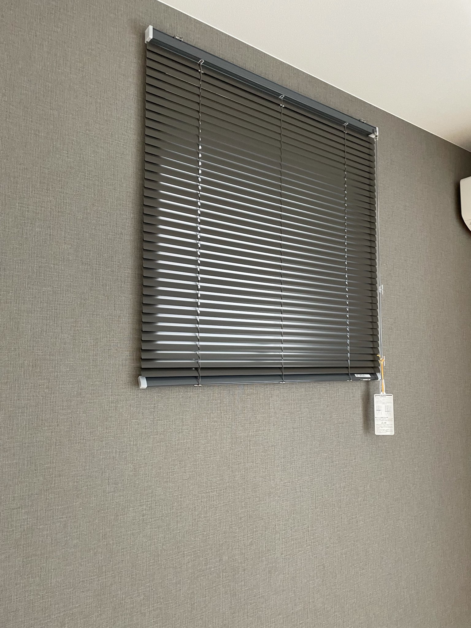 高校生と20代のご兄弟のお部屋です。ご年齢的にも男性的なかっこいいお部屋になるようグレー系の遮光カーテンとシンプルな遮熱ミラーレースをお勧めしました。アクセントの壁紙があるお部屋には壁紙と同系色のアルミブラインドを。濃色にすることでアクセントウォール全体の引き締め効果も出ます。