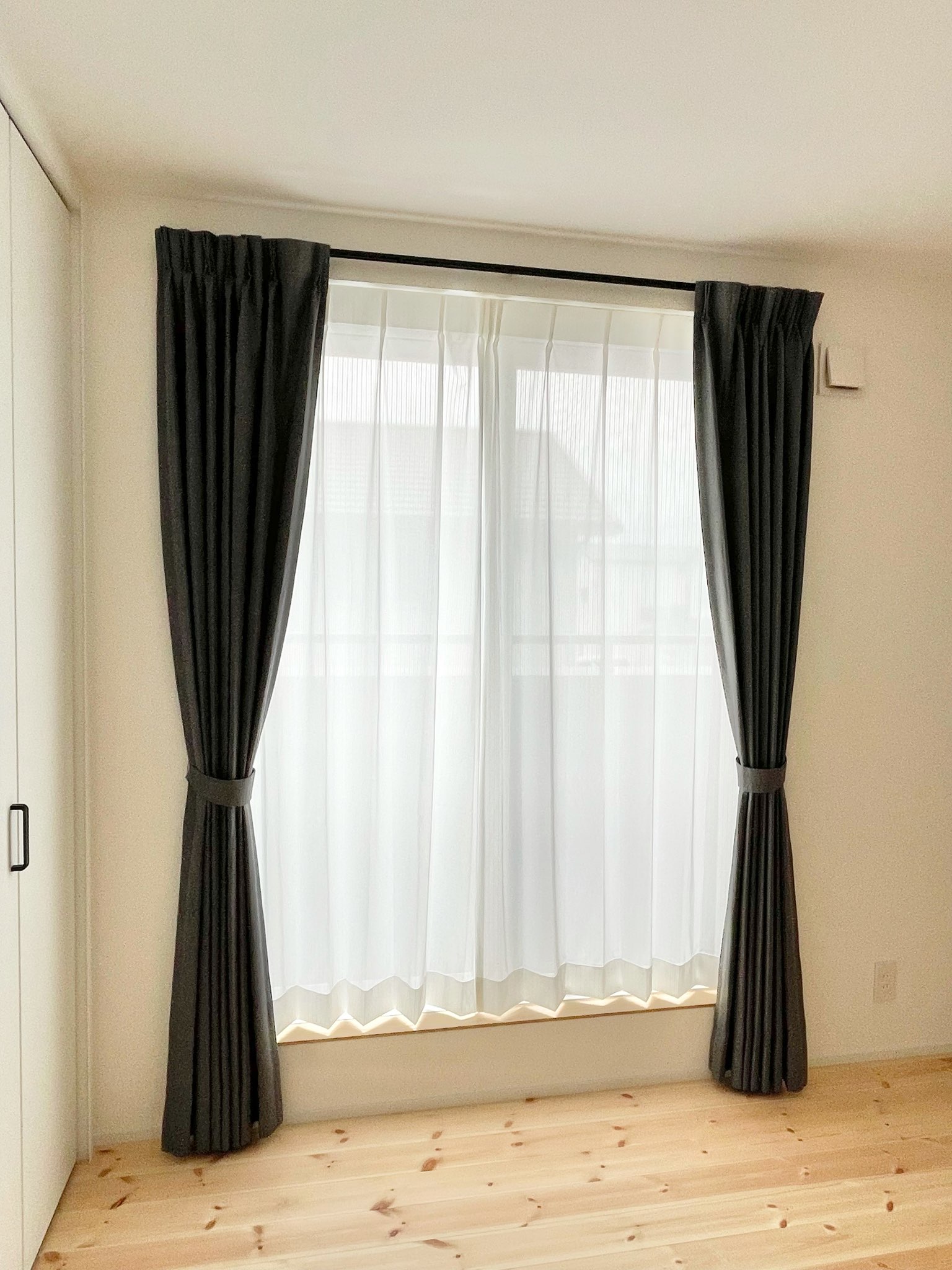 カーテンレールもお部屋のイメージに合わせブラックをお選びいただきましたので、全体がかっこよくまとまりました。コンパクトなご予算の場合 選択肢は少なくなりますが、上手に組み合わせればご希望のイメージに近づけることができます。