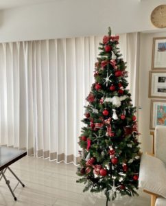 以前掛けられていたカーテンは赤い柄のものだったで、今回は全体が同化するような白いものをお選びいただきました。