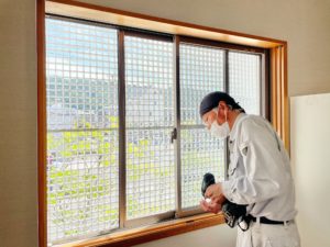 「外の音は付けてすぐに聞こえにくくなったのを感じました。とても静かです。いつもなら秋口に毛布を出してしまうほど寒がりの私が、まだ毛布を使わず靴下も履かず寝ています!掛け布団カバーも毛布タイプのあったかいものを使用していましたが、それも使っていません!自分でもびっくりです。今まで厚手のカーテンを床までの長さでかけてみたり断熱材を窓ガラスに貼ったり、色々やってもダメだったのに…本当につけてよかったです!」とのことでした。施工は30分もあれば終わるので気軽に工事出来ます。